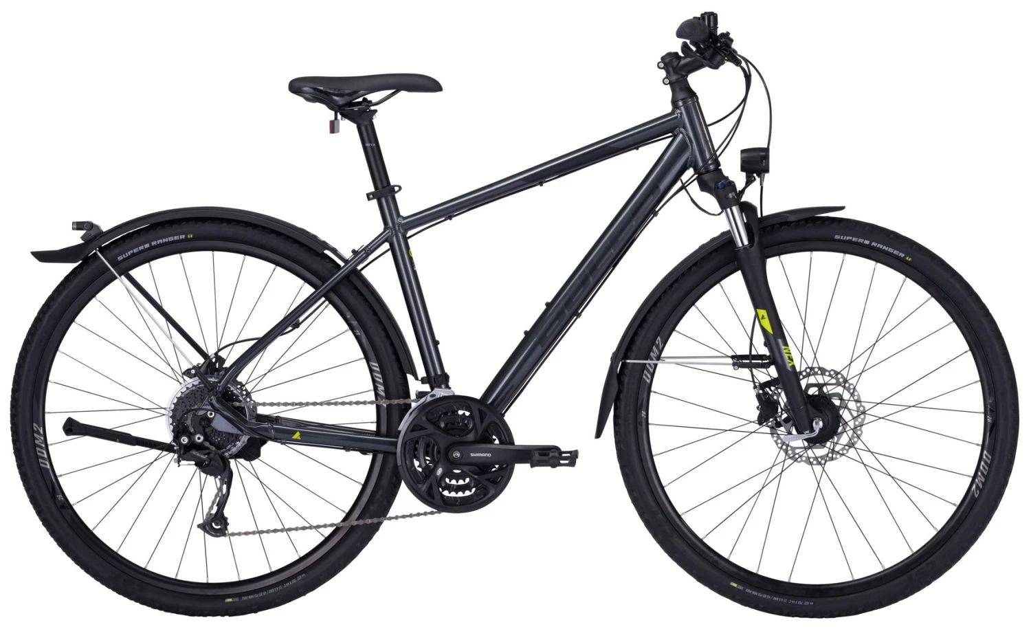 Als sportliches Multitalent bewegt sich das Cross Street schnell und sicher zwischen Alltag und Freizeit. Dank 27-Gang-Schaltung, hydraulischen SHIMANO-Scheibenbremsen, Luftfedergabel mit Lenker-Lockout und pannengeschützten SUPERO Ranger Profilreifen ist das Cross Street bereit für neue Herausforderungen.
