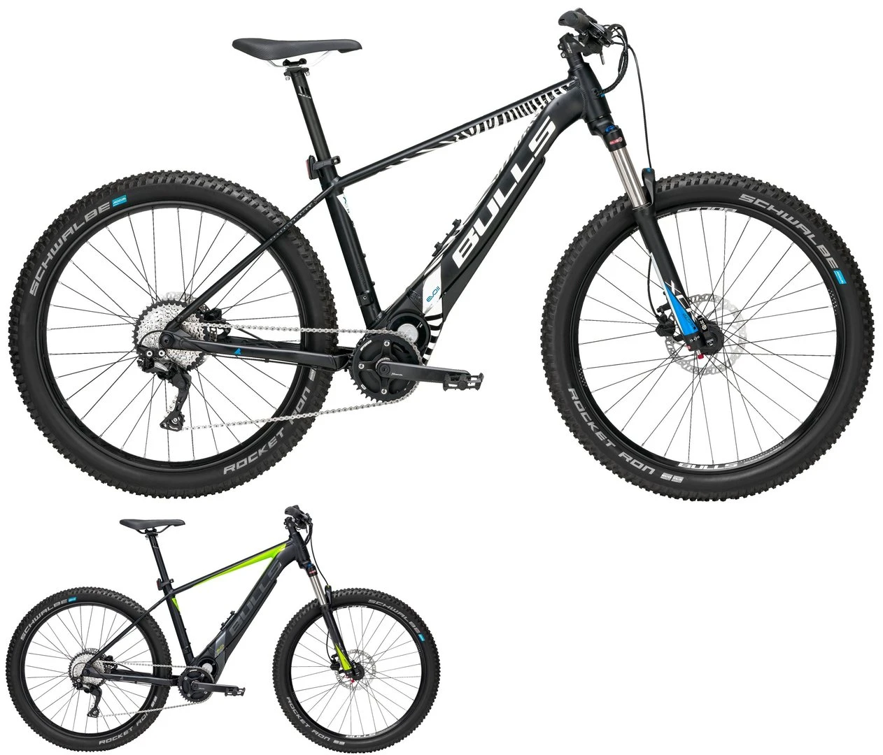 Hydroforming Alu-Rahmen, XCR-34-LO Boost Federgabel mit 120mm Federweg, Deore Schaltwerk, Schalthebel und 11-42 Zahnkranz, Tektro HD-M275 Disc-Bremsen (180/180mm), Bulls AS-35P Disc Felgen, Brose Mittelmotor Drive-S Alu 250W / bis 90Nm, 650Wh Akku aus dem Rahmen entfernbar, 14d Sport-Display, Rocket Ron Snake Skin 2.80 Reifen mit Addix Speedgrip, Monkey Link Lamenhalter