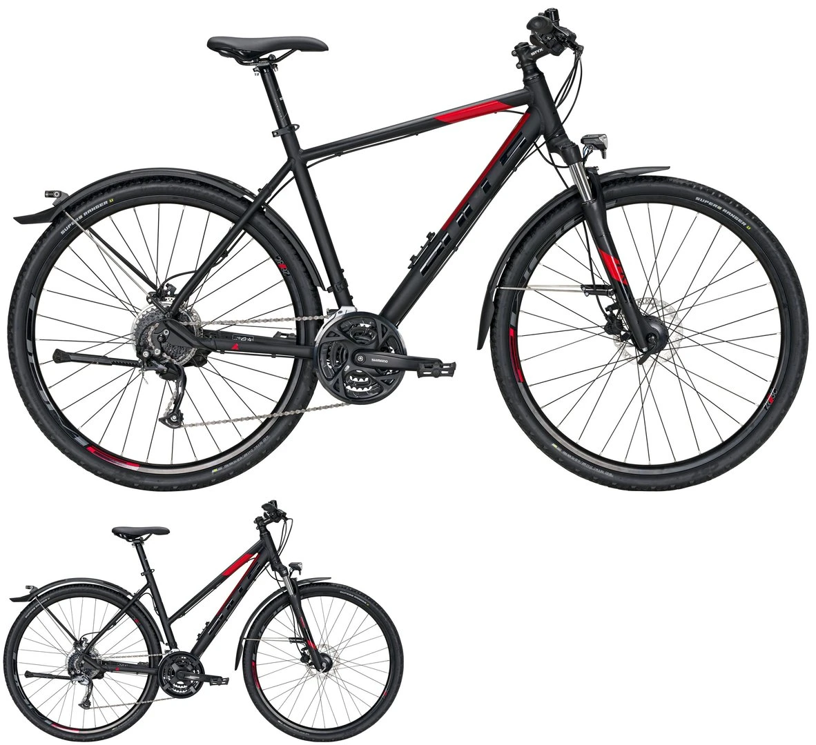 7005-Alu-Biaxial-Rahmen, Suntour NVX Federgabel einstellbar, 27-Gang Shimano Altus Schaltwerk, Schalthebel Umwerfer und Kurbeln, Tektro HD-T275 Disc-Bremsen, Bulls DDM-2 Disc Hohlkammerfelgen, DH-3D32 Nabendynamo, 50 Lux LED-Lampe mit Sensor und Standlicht, Standrücklicht hinten auf dem Schutzblech, SKS Velo 55 Steckbleche mit Streben, Pletscher Flex KSA-40 Ständer